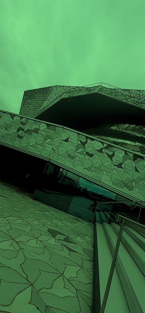 bref, la philharmonie, l’évidence. six ans auparavant, trouvée là au bord du parc, grandiose, qui a soigné instantanément des plaies et des questionnements, qui a guidé la fin du séjour et les pas un peu ivres jusqu’à l’hôtel, cette fois-ci elle emplit d’une joie immense les pieds les poignets les joues, elle remplit de rose et de forces et de santé ce qui reste de ce qu’on traîne ce jour-là